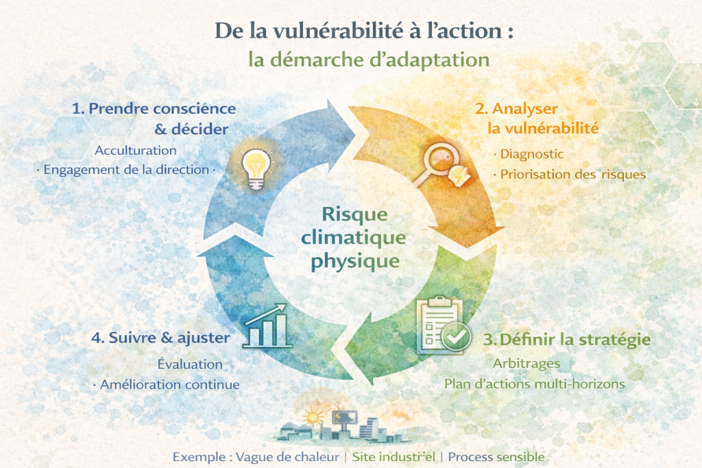 Face à la diversité et à la complexité des impacts climatiques, une erreur fréquente consiste à vouloir agir trop vite, en multipliant des actions isolées. Or, sans compréhension précise de ses vulnérabilités, une entreprise risque d’investir au mauvais endroit, au mauvais moment. L’étude de vulnérabilité constitue donc le socle de toute démarche d’adaptation crédible.