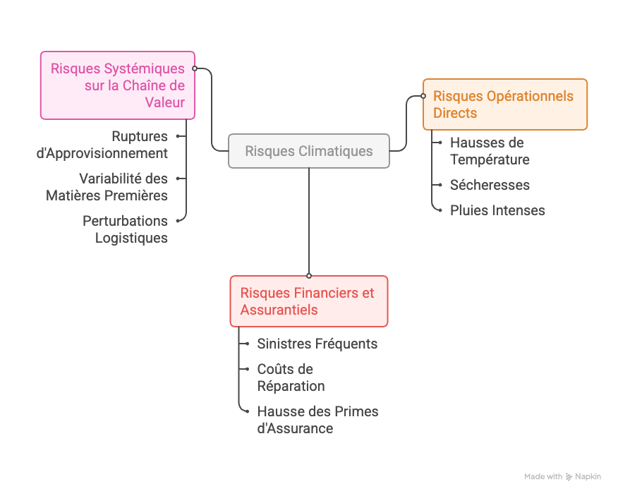 Les impacts climatiques touchent en effet le cœur du fonctionnement des entreprises :