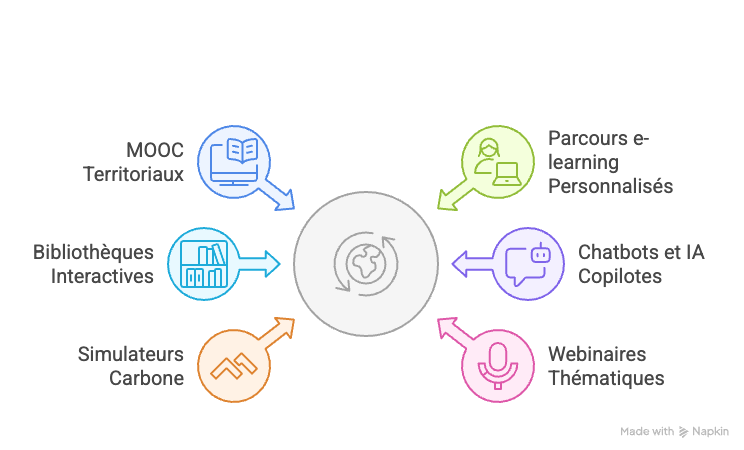 C’est ici que le numérique intervient comme un véritable catalyseur. Bien au-delà de la simple digitalisation de documents ou de formulaires, le numérique apporte des outils capables d’accélérer, de fiabiliser et de distribuer l’expertise : plateformes collaboratives, outils de modélisation carbone, automatisation des diagnostics, jumeaux numériques, data spaces, intelligence artificielle, observatoires interactifs, communautés apprenantes en ligne… Ces technologies réinventent non seulement la manière d’accompagner, mais aussi la manière de piloter une transition territoriale.