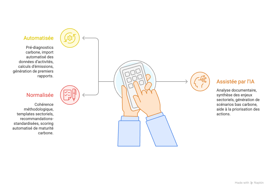 Ces méthodes produisent des résultats de qualité, mais elles sont intensives en ressources et en temps. Un accompagnement ACT peut nécessiter 12 à 18 mois ; un audit énergétique plusieurs semaines ; une feuille de route climat des mois d’allers-retours. Même avec des équipes renforcées, la capacité de traitement reste limitée.