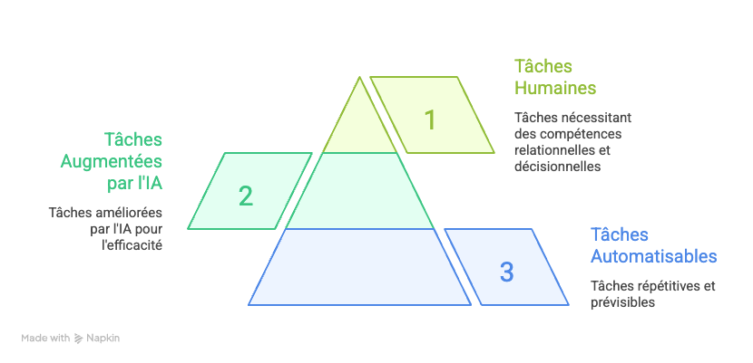 Cette distinction entre tâches et emplois est essentielle pour comprendre la dynamique actuelle. L’intelligence artificielle n’automatise pas des professions entières ; elle reconfigure progressivement les activités qui les composent. Cela peut se traduire par des gains de productivité importants, une évolution des compétences demandées et une redéfinition des rôles dans les organisations.
