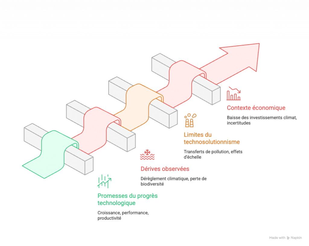 Face aux crises actuelles, la tentation est grande de s’en remettre exclusivement aux technologies dites “vertes”. Pourtant, ce technosolutionnisme se heurte à trois limites structurelles rappelées dans la publication :