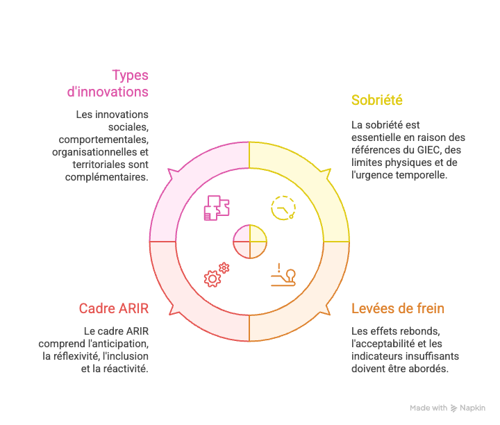 L’innovation traditionnelle a permis l’essor de nos sociétés, mais elle est aujourd’hui confrontée à ses propres limites : dépendance accrue aux ressources, effets rebonds, pollution et impacts non anticipés. La sobriété, désormais considérée comme incontournable par l’Académie des technologies et le GIEC, rappelle que la transition écologique exige de repenser la place de la technologie dans nos modèles et d’inscrire l’innovation dans un cadre responsable.