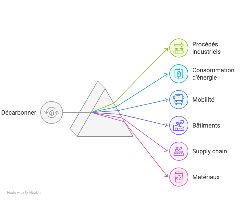 Panorama des leviers concrets de décarbonation pour les entreprises : procédés bas-carbone, énergies renouvelables, logistique verte, matériaux durables…