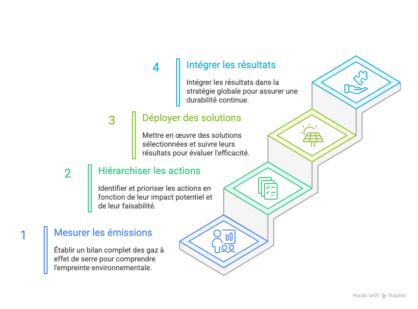 Adopter des solutions de décarbonation ne peut se faire sans une démarche structurée et pilotée dans la durée. Il ne s’agit pas seulement d’acheter une technologie ou de signer un contrat vert, mais de construire une trajectoire crédible, mesurable et adaptée à ses enjeux spécifiques.