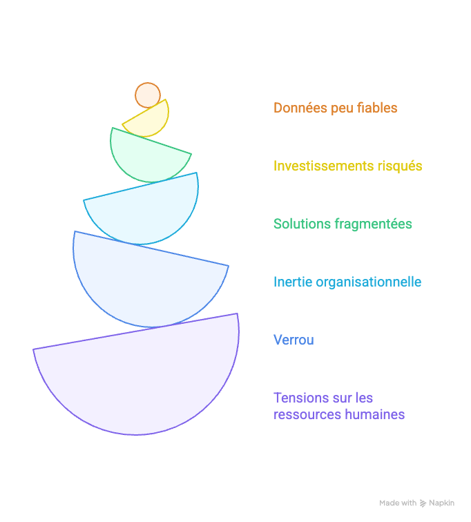 • Inertie organisationnelle, absence de portage politique clair en interne.